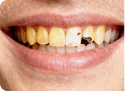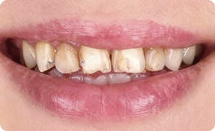 - потемнении зубов, которое не поддается отбеливанию;