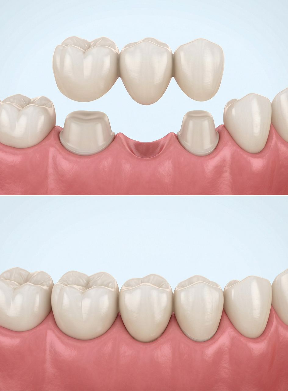 Это несъемная конструкция, которая опирается на зубы пациента. Ее применяют при отсутствии 1-3 зубов подряд. Установка такого протеза — простая и безболезненная процедура.